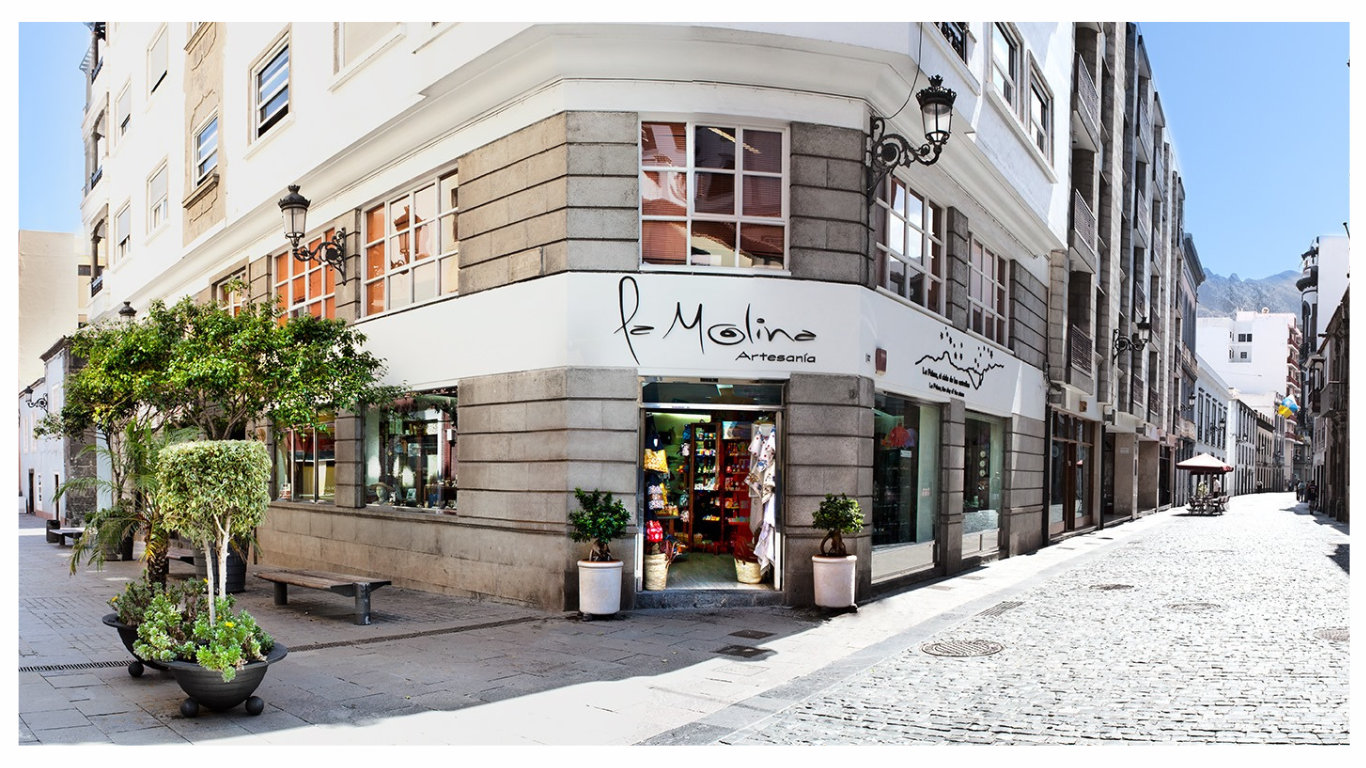 “La Molina” es un establecimiento ubicado en el casco histórico de Santa Cruz de La Palma que combina tienda de artesanía local con galería de productos tradicionales y creativos de la isla. Su oferta se centra en productos artesanales elaborados por artesanos palmeros, así como alimentos típicos de la gastronomía local y objetos de regalo y recuerdo. El espacio también participa, de manera ocasional, en iniciativas culturales, como exposiciones de arte, incluso trabajo en vivo de artesanos locales.