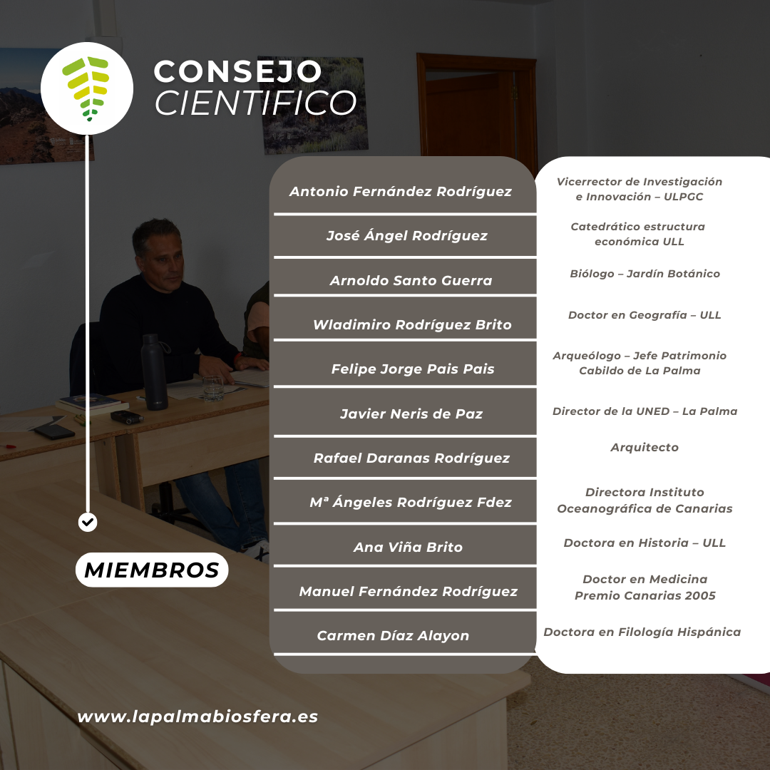 El Consejo Científico de la Reserva Mundial de la Biosfera La Palma, es un órgano de carácter consultivo y sectorial, fundamental en la estructura de la Fundación.